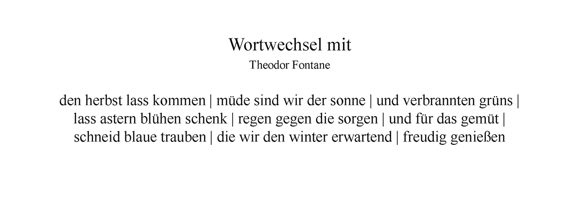 Nun also Wortwechsel, heute habe ich Wörter von Theodor Fontane für meinen Herbsteinstieg „geliehen“. Der Originaltext mit den markierten, entliehenen Wörtern zuerst (und wenn dir die Texte zu klein zum Lesen sind, hilft Anklicken, sie sind dann größer zu sehen):