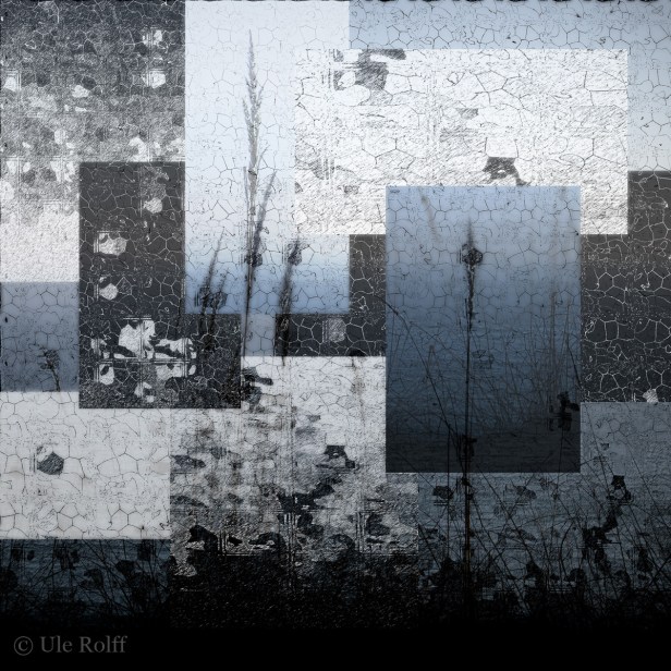 ich bin ambivalent dieser Bearbeitung gegenüber. Ästhetisch ist sie ansprechend, besonders die matten Graublautöne und die gesprungenen Oberflächen mag ich. Aber für mich ist es zu viel Geschachtel, das den ganzen Raum zustellt, so dass das Atmen schwerfällt. So anders war das Original. Hinzu kommt, dass Schilfrohr nicht frail ist – ganz im Gegenteil: es passt sich geschmeidig den Windgegebenheiten an. Wolltest du einen Gegensatz zwischen der freien Natur und der Brüchigkeit der menschlichen Vorrichtungen darstellen? Mir kommt da das Bedürfnis, einmal kräftig gegen all diese Scheiben zu schlagen, auf dass sie zerspringen und ich ins Freie gelange.