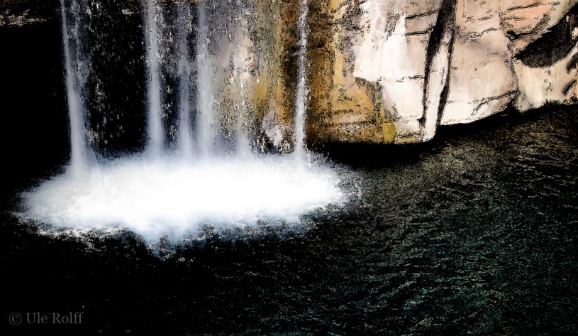 Hi Ule, thanks for the refreshing dip in the water. 🙂 It is endlessly fascinating, isn’t it? I like what you did with the featured photos and the last photo – the processing is very interesting. In both cases you made really effective choices – the bright white, deep shadows and slight haze in the water for the waterfall and the pale colors, fine textures and emphasized geometry in the last one. It’s funny to me that the texture gives it a dry look but you know it’s water – that’s a nice kind of push-pull in different directions. And I can almost hear the water splashing down in that waterfall. The first one after the featured photo is another image that attracts me – those colors and all those little ripples. I’m glad you’re enjoying the camera(s)!! 🙂