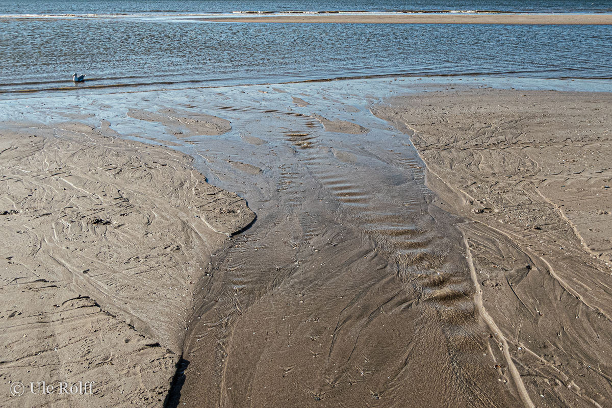 Mir gefällt das Originalbild so gut, diese hauptsächlich durch Wasser erzeugten Strukturen, die genau am richtigen Platz schaukelnde Möwe, dass Meer, dass ich gar keine Veränderungen davon sehen möchte. Wie gelungen sie auch sein mögen…