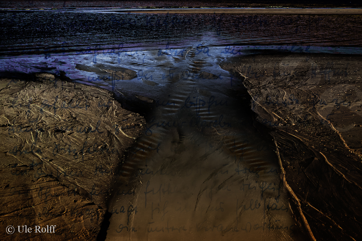 Sehr fein. Mit Worten durchaus, die aber auf geheimnisvolle Ornament reduziert sind: also mit Worten ohne Worte – wow! Und die Lichtregie ist ein Gedicht! – Wofür ich aber zu blöd bin, ist der Zusammenhang zu den Bildern von Ulli Gau. Integriert ihr jeweils das Bild des anderen in Eure Bilder bzw. überschreibt Ihr einander? Palimpseste?