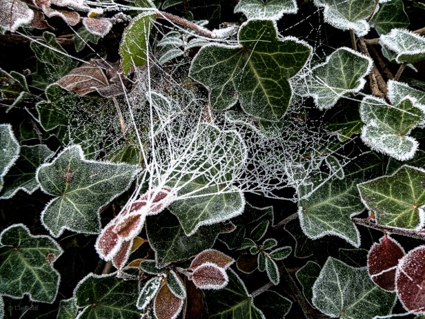 Thank you, dear Jane 🙂. The spider web photo has much depth of field, so the icy leaf edges behind the web mix up in equal sharpness. I believe that makes part of the surprising effect.