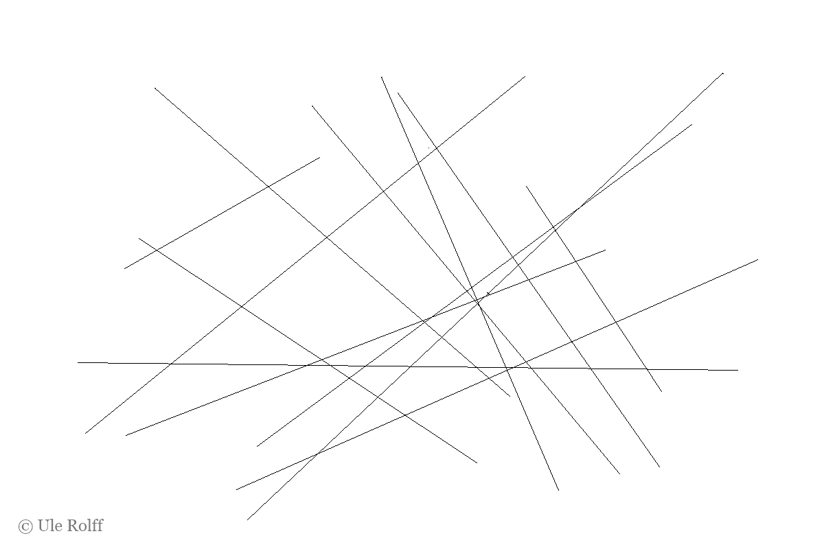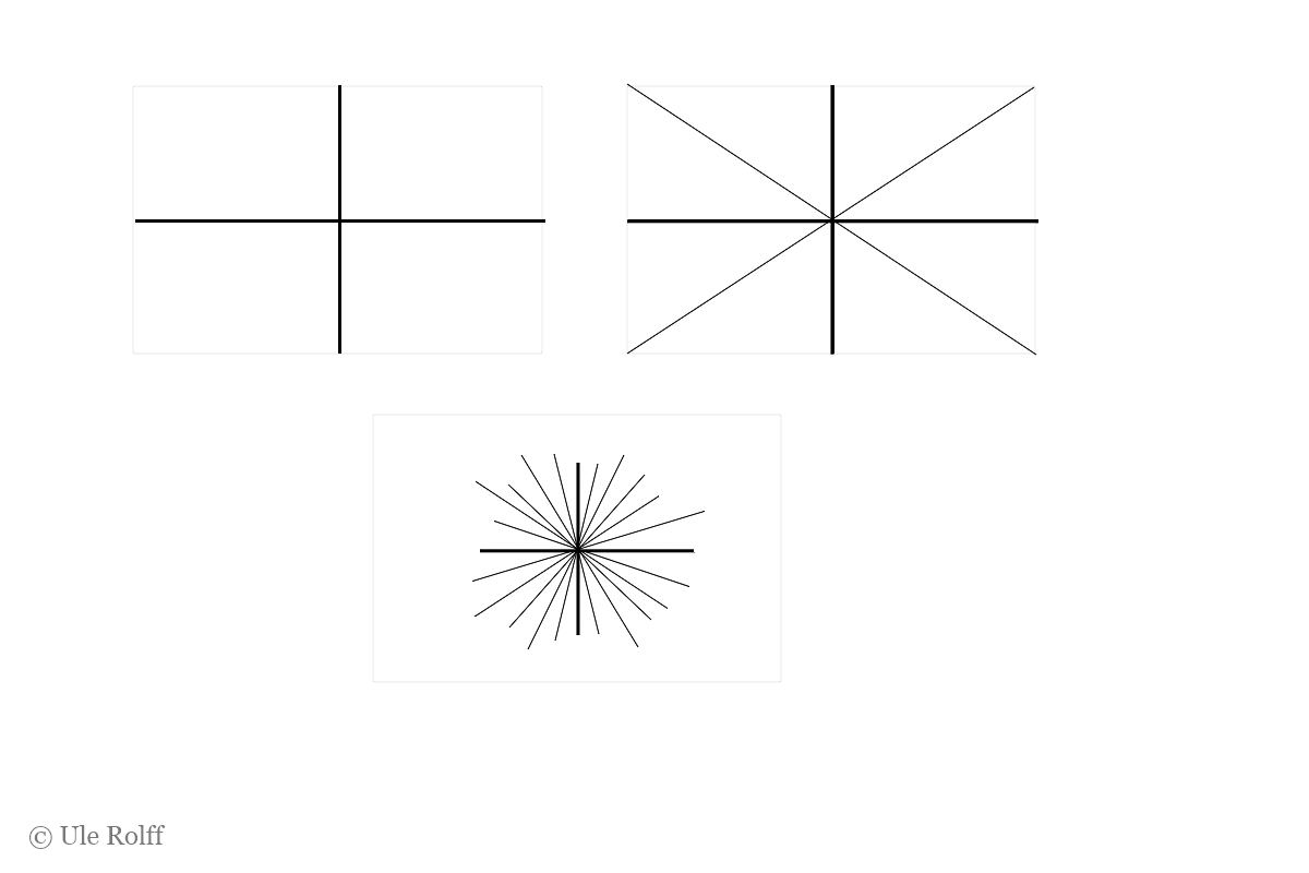 Die azentralen Geraden, besonders wenn sie ohne Kontakt zum Bildrand sind, entfernen sich von der Bildfläche, können sie sogar scheinbar durchstoßen. Somit sind sie extrem unruhig.