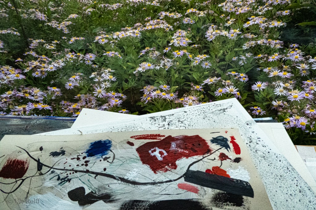 Das dritte gefällt mir am besten, vollblutige Malerei vor der Üppigkeit der Blumen.
