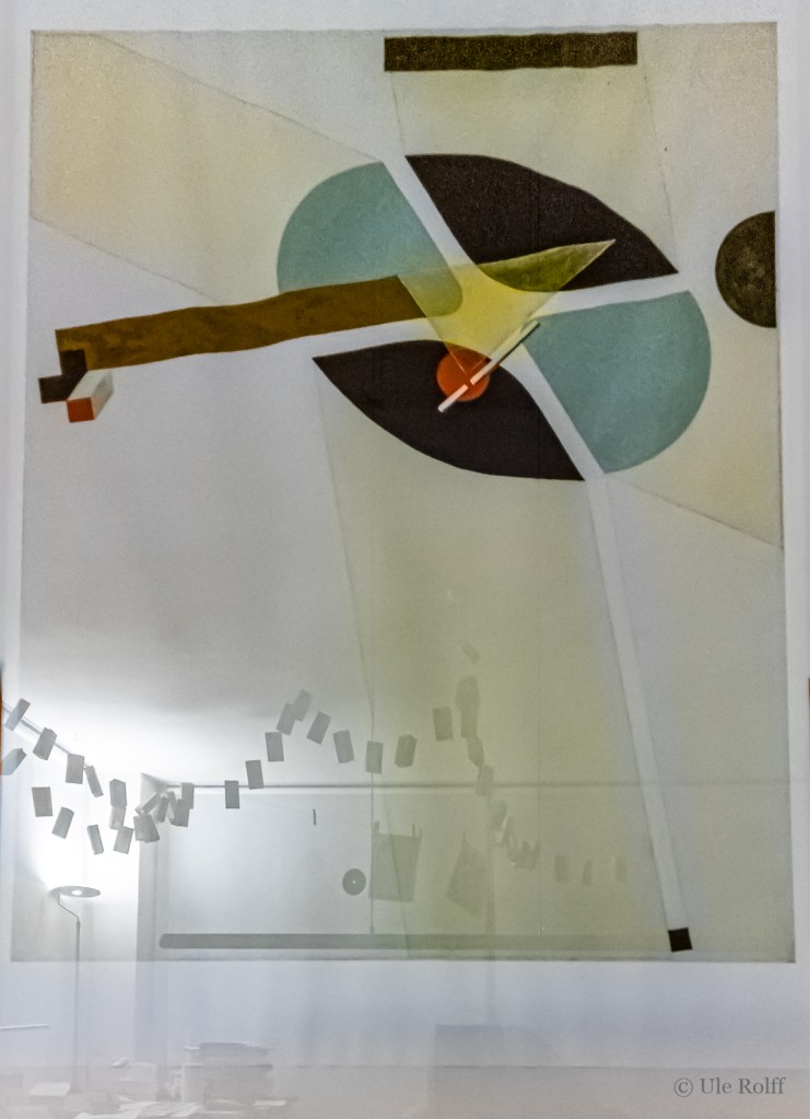 Ein tolles Bild von Lissitzky und wie schön, daß das Bild immer vor deinen Augen hängt. Ich mag die Arbeiten von El Lissitzky sehr gerne. Dieses Bild kenne ich übrigens noch nicht. Dein Foto hier ist wie eine Reminiszenz an den Künstler. Alles zusammen, die Formen und Spiegelungen, ergeben ein wunderbares Bild. Toll!!!